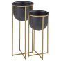 Enhance your home decor with this elegant iron plant pot set, featuring a sophisticated matte black finish and gold-tone stands. Ideal for indoor use, these planters bring a contemporary touch to any setting. You don't have to worry about their durability, as they are rust-resistant. Their robust iron design ensure they can last for many years, while offering a stylish display for your favourite plants.