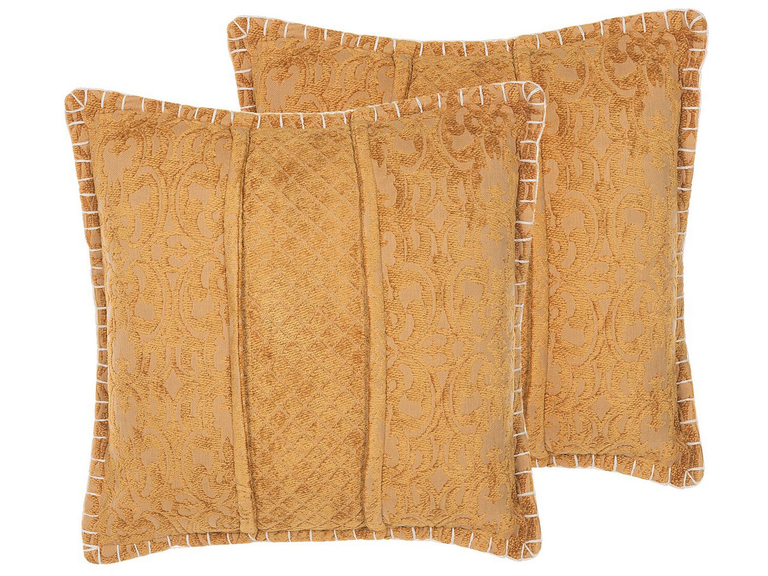 Set of 2 Embossed Cushions 45x45cm Yellow