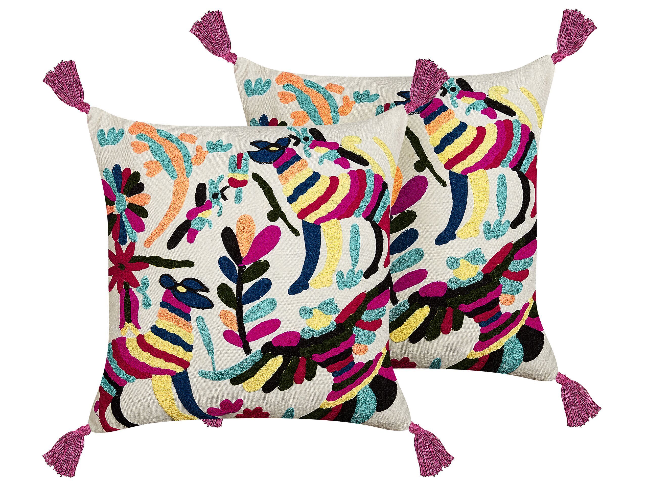 Set of 2 Embroidered Cotton Cushions Animal Motif 50x50cm Multicolour