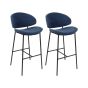 These modern bar chairs boast a sleek and minimalist design, featuring an armless silhouette that maximises space efficiency. Their standout feature is a gracefully curved backrest, offering both comfort and an elegant touch to your dining area. The chairs' minimalistic style is accentuated by their sturdy metal legs, which provide stability. Placed around your kitchen island, they will not only serve as functional seating solutions but also as stylish elements of design, elevating the overall ambiance of your dining space. Details: Color: Blue, Black. Main material: Polyester. Additional material: Iron, Plywood, Poplar Wood. Material Composition: 100% Polyester Weight: 6 Assembly: Partial Assembly Required Wood type: Populus Wood Origin: China Weight Capacity: 120 Seat Height: 71