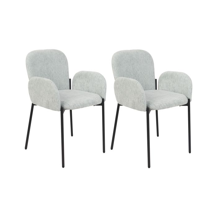 Elevate the look of your dining space with this set of retro chairs. Upholstered with durable, high-quality polyester fabric in mint green colour, the pieces will draw attention not only with their shade, but also with their timeless look, curved armrests and sleek, metal legs. Thickly padded seat ensure comfort during use, making every meal a pleasure. Details: Color: Green, Black. Main material: Polyester. Additional material: Iron, Plywood. Material Composition: 100% Polyester Weight: 6 Assembly: Legs to be Fitted Weight Capacity: 120 Padding Thickness: 5 Seat Height: 42