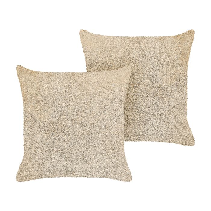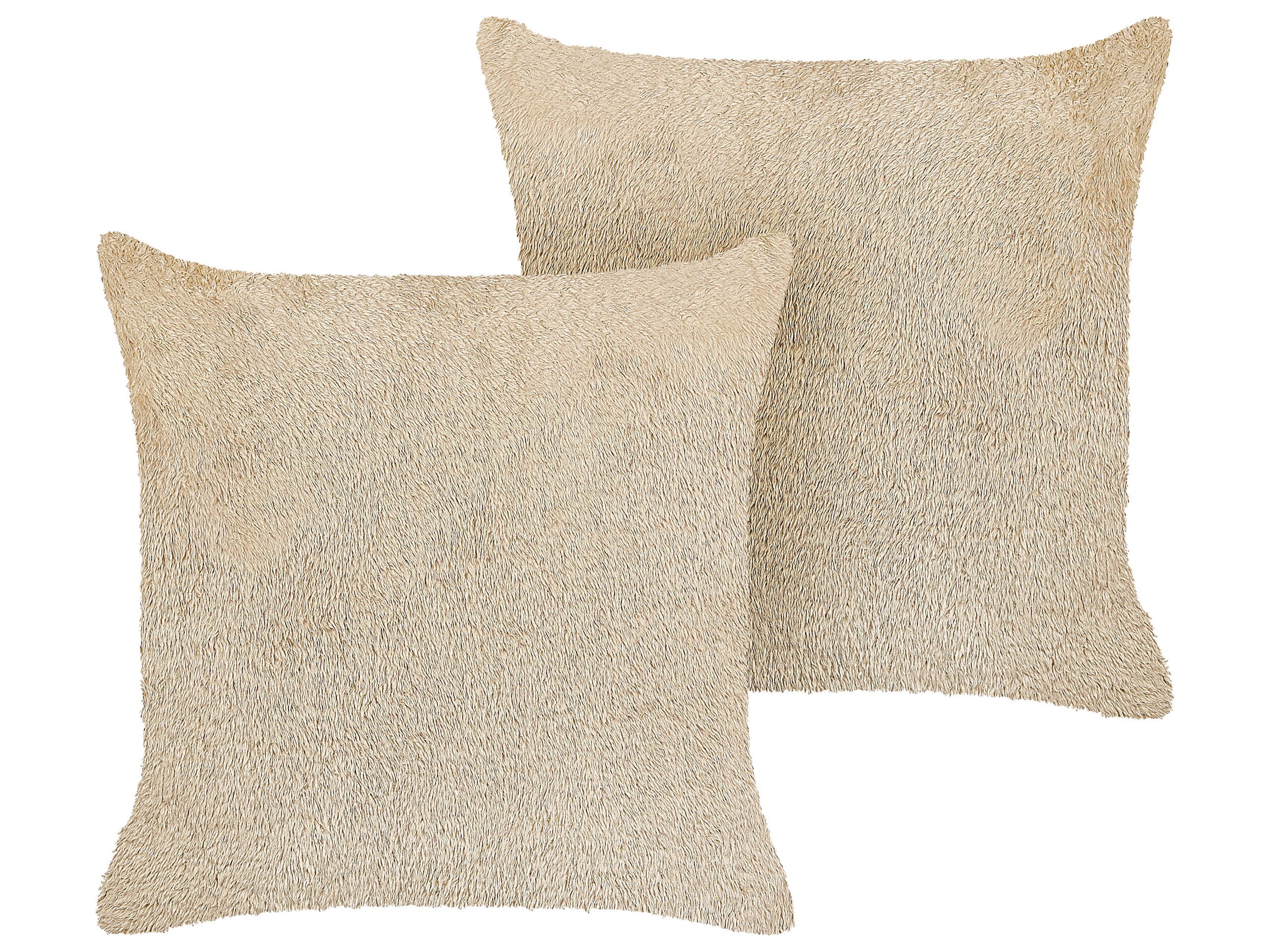 Enhance the decor of your living space with these stylish cushions. Made out of polyester, they are very durable and pleasant to touch, especially because of their shaggy-like texture. Thanks to their classic beige colours, they can be matched with a variety of interior decors. Details: Color: Beige. Main material: Faux Fur. Material Composition: 100% Polyester Assembly: Does Not Require Assembly