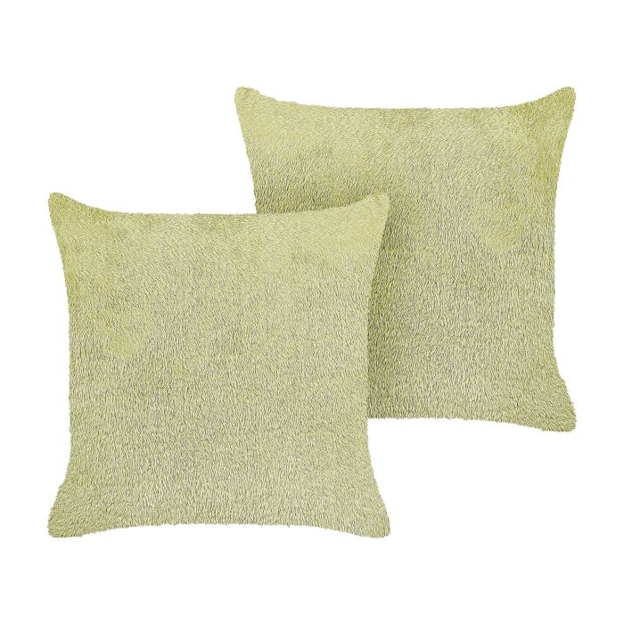 Enhance the decor of your living space with these stylish cushions. Made out of polyester, they are very durable and pleasant to touch, especially because of their shaggy-like texture. Thanks to their green colours, they can be matched with a variety of interior decors. Details: Color: Green. Main material: Faux Fur. Material Composition: 100% Polyester Assembly: Does Not Require Assembly