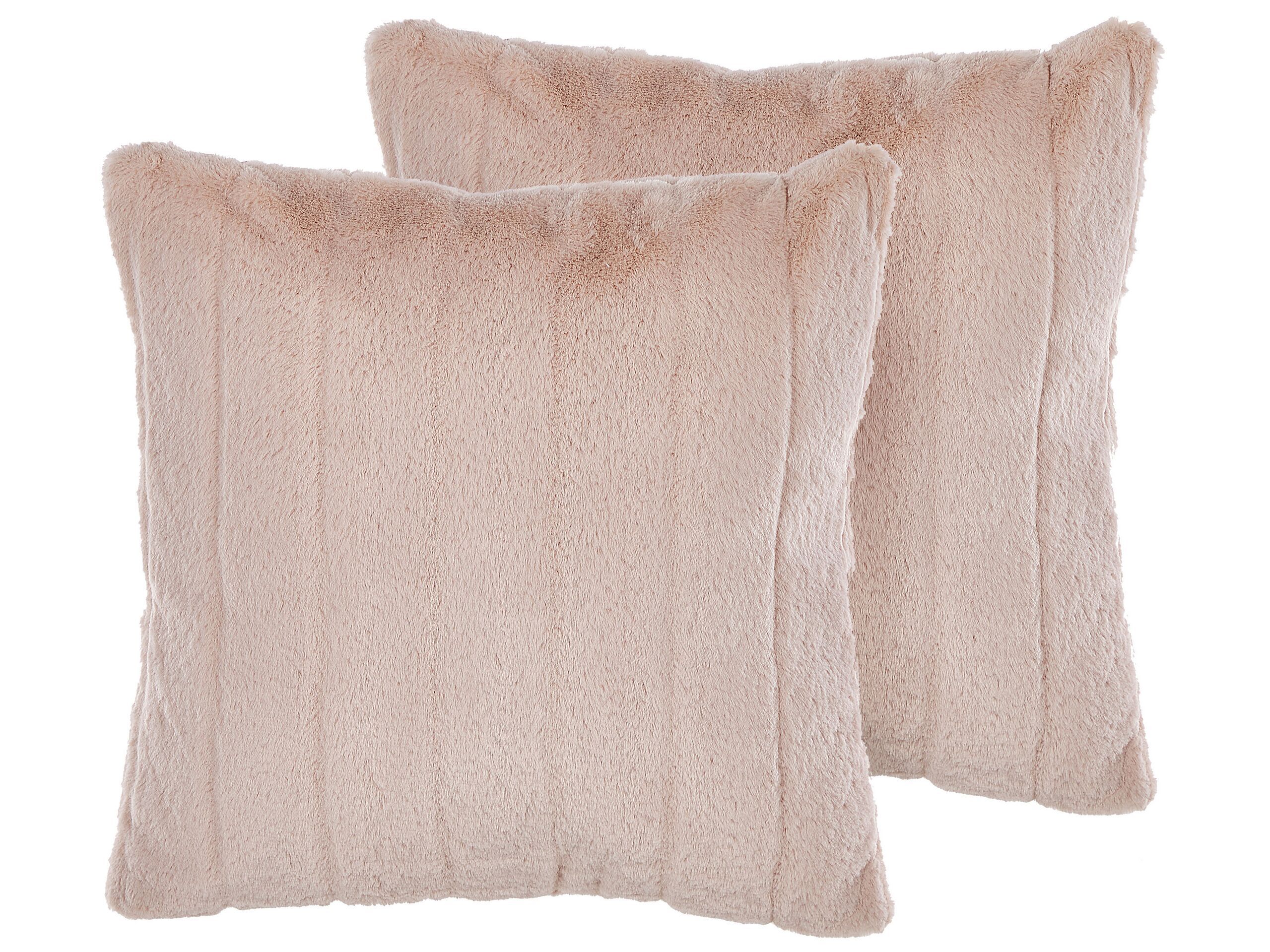 Set of 2 Faux Fur Cushions 45x45cm Light Pink