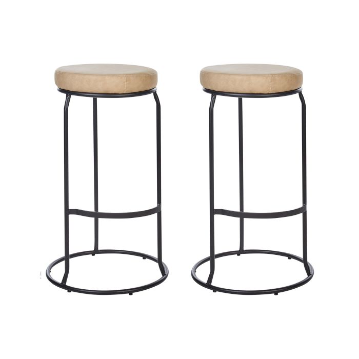 Transform your kitchen or dining area with our set of 2 faux leather bar stools. Crafted with sophistication in mind, these stools feature sleek black steel legs accented with protective leg caps, ensuring both durability and style. Upholstered in high-quality faux leather, they offer a luxurious seating experience while effortlessly elevating your space's aesthetic. Perfect for functional kitchens or chic dining rooms, these bar stools are the epitome of modern chic. Details: Color: Beige, Black. Main material: Faux Leather. Additional material: Steel. Material Composition: 100% Polyester Weight: 3 Assembly: Partial Assembly Required Weight Capacity: 120 Seat Height: 74