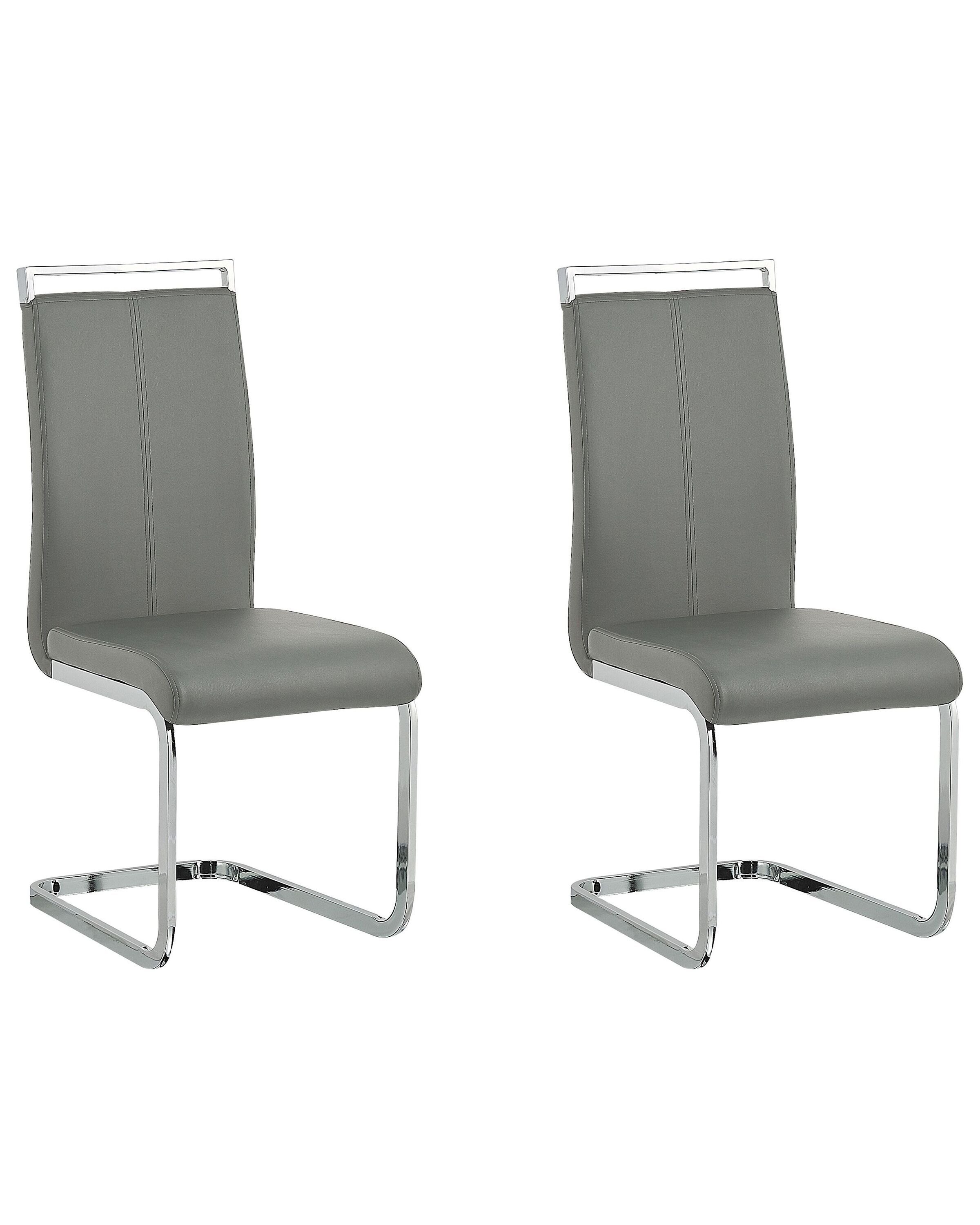 Set of 2 Faux Leather Dining Chairs Grey GREEDIN