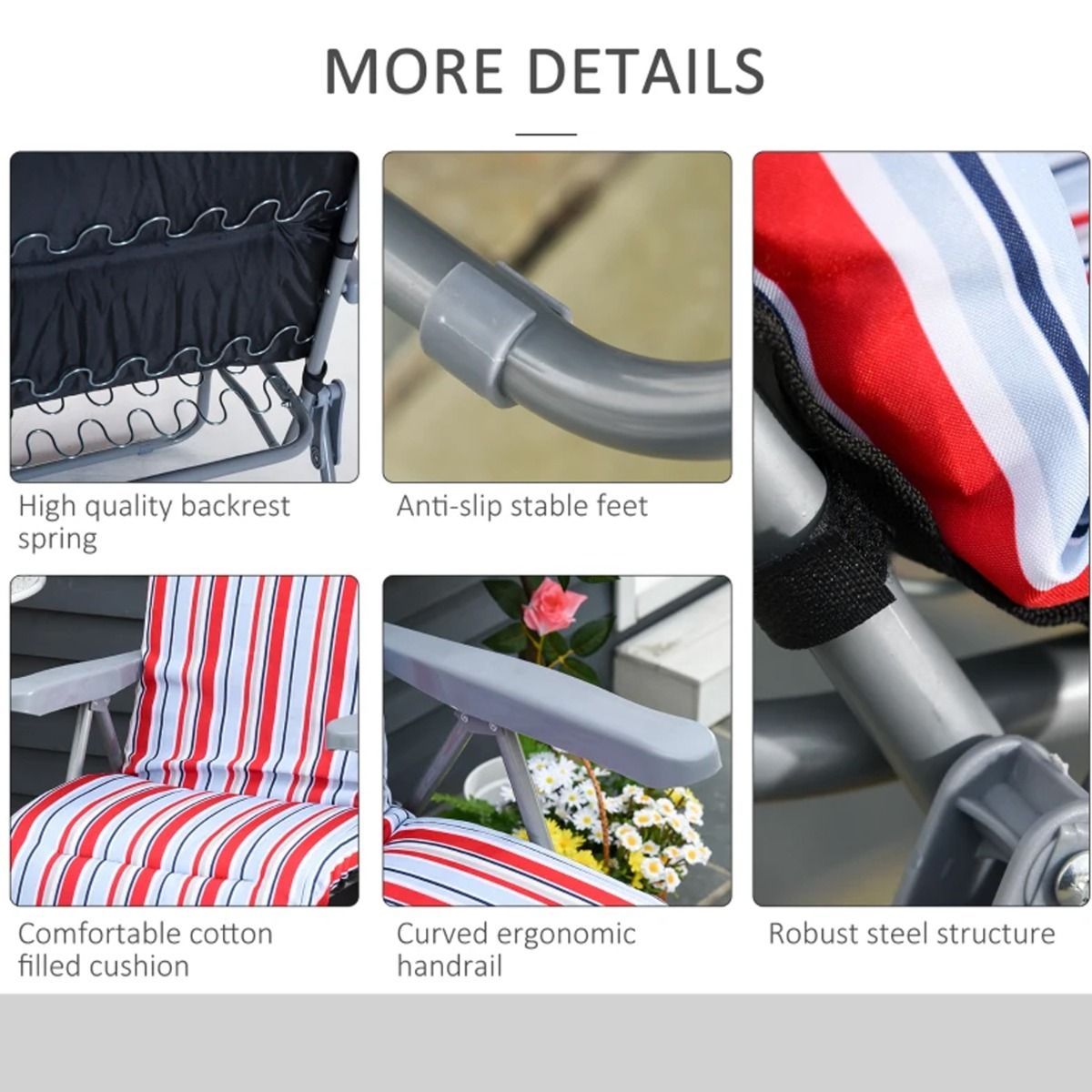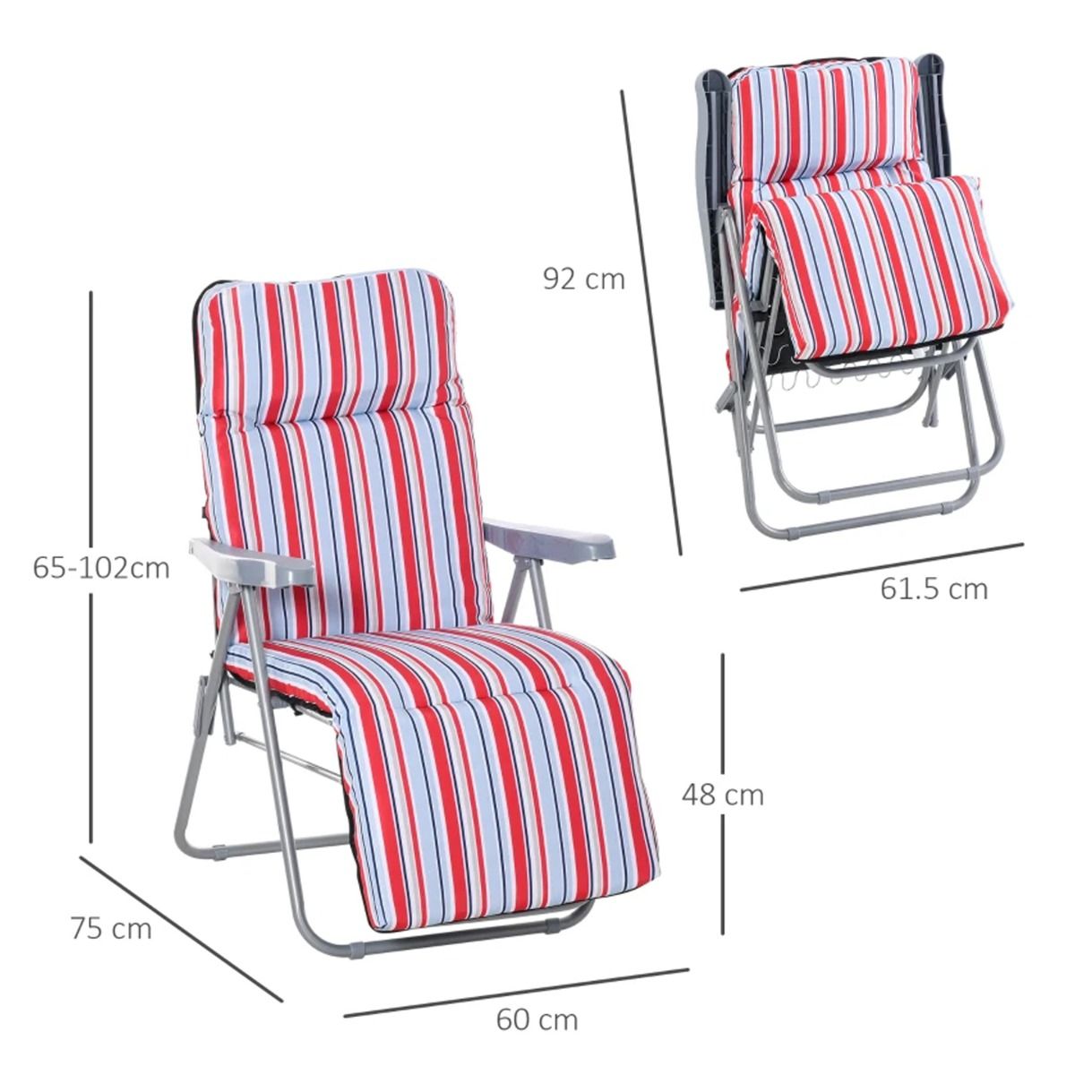 - Foldable padded garden lounger with 5 position reclining adjustment