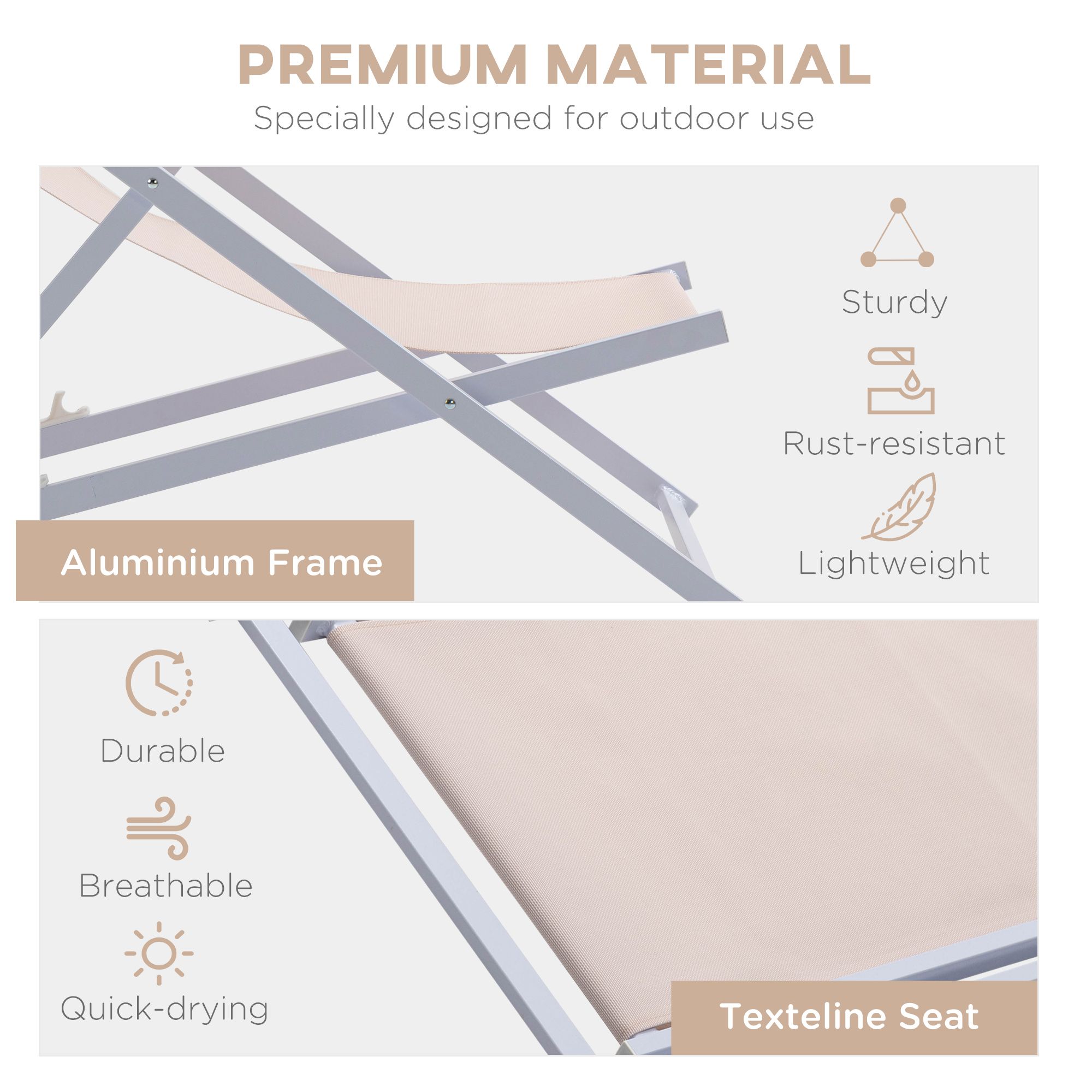 Set of 2 Folding Garden Beach Deck Chairs Deckchairs Seaside Folding Garden Patio Lounger, White