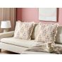 Set of 2 Fringed Cushions Leaf Pattern 60x60cm Beige