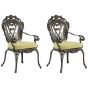 Elevate the decor of your outdoor area with this vintage-inspired dining chairs. Light yet durable thanks to aluminium construction, they boast brown finish for an elegant look. Featured curvaceous shapes and intricate patterns give them a unique appeal that highlights any outdoor area with a sophisticated accent. Details: Color: Brown, Green. Main material: Aluminium. Additional material: Polyester. Material Composition: 100% Polyester Weight: 10 Assembly: Full Assembly Required Weight Capacity: 150 Cushions Dimensions: 44x47 Padding Thickness: 5 Seat Height: 33