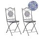 Infuse your balcony or patio with vintage allure using this charming set of bistro folding chairs. The pieces are constructed from robust metal and embellished with a beautiful ceramic mosaic pattern, which offers both durability and sophistication. Designed to withstand the elements, they're effortlessly easy to maintain, making them the perfect choice for a summer refreshing drink or a meeting with a friend.
