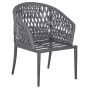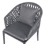 Reinvent your garden with this modern-design chair set. Made from robust metal, it features a trendy, rope backrest that allows for free air movement and ventilation. Optimal seated comfort is reached thanks to generously padded back and seat cushions. Pair them up with a complimentary table and create an inviting bistro area in your garden. Details: Color: Grey. Main material: Aluminium. Additional material: Polyester. Material Composition: 100% Polyester Weight: 7 Assembly: Full Assembly Required Weight Capacity: 130 Padding Thickness: 4 Seat Height: 47