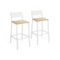 Set of 2 Kitchen Bar Stools Oak Beige and White