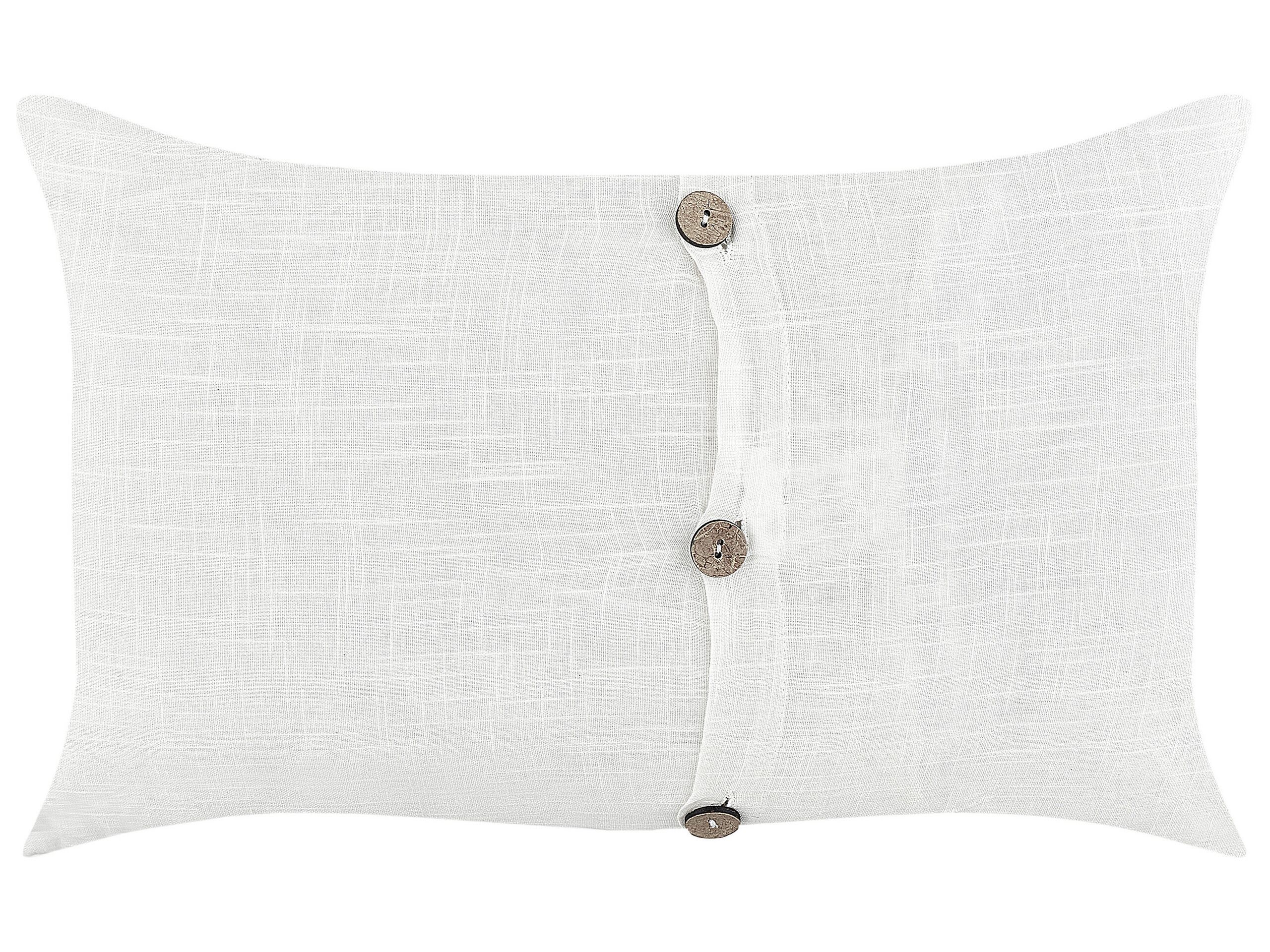 Experience the perfect blend of elegance and comfort with this set of two cushions. Crafted with a linen front and cosy cotton back, these accessories offer a luxurious feel. The removable covers feature a decorative wooden button closure, adding a touch of sophistication to your decor. Embrace the versatility of style and functionality as you enhance your living space with these chic and inviting cushions. Details: Color: White. Main material: Linen. Material Composition: 50% Linen, 50% Cotton Assembly: Does Not Require Assembly