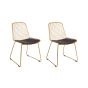 Refresh your interior with these industrial-inspired chairs. Crafted from sturdy steel, these pieces feature the iconic wire design on the seat and backrest. With a lustrous gold finish and sleek, slender legs, they exude an irresistible elegance. Additionally, they come with seat cushions upholstered in contrasting black faux leather. Perfectly blending style and durability, these chairs are a must-have addition to any contemporary space. Details: Color: Gold, Black. Main material: Steel. Additional material: Faux Leather. Material Composition: 100% PU Leather Weight: 8 Assembly: Partial Assembly Required Weight Capacity: 100 Seat Height: 43