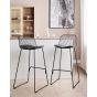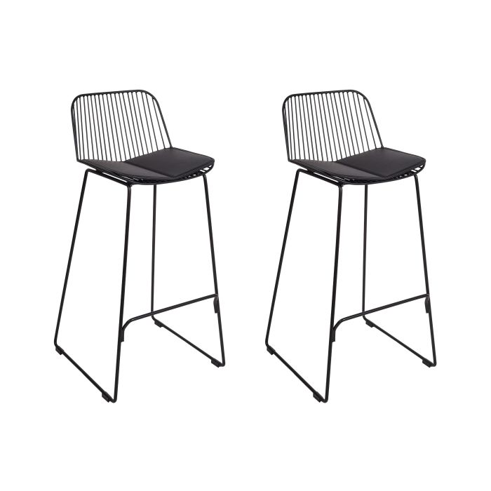 Refresh your interior with these industrial-inspired bar chairs. Crafted from sturdy steel, these pieces feature the iconic wire design on the seat and backrest. With a matt finish and sleek, slender legs, they exude an irresistible elegance. Additionally, they come with seat cushions upholstered in contrasting black faux leather. Perfectly blending style and durability, these chairs are a must-have addition to any contemporary space. Details: Color: Black. Main material: Steel. Additional material: Faux Leather. Material Composition: 100% PU Leather Weight: 8 Assembly: Partial Assembly Required Weight Capacity: 100 Seat Height: 76