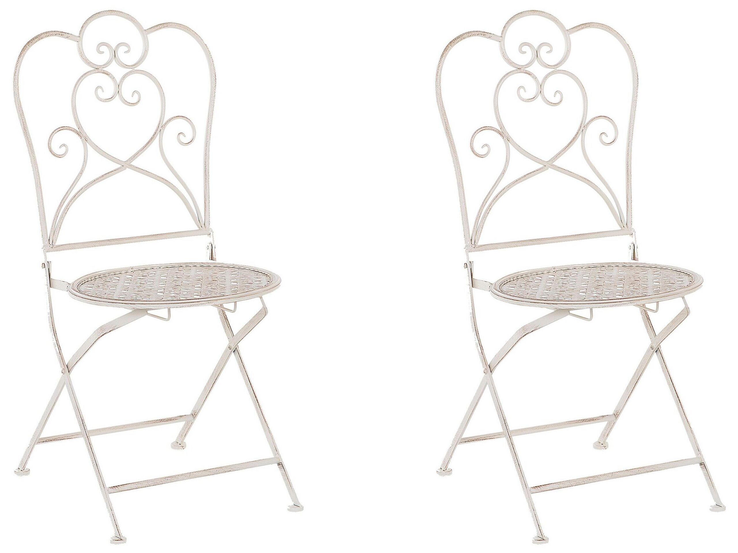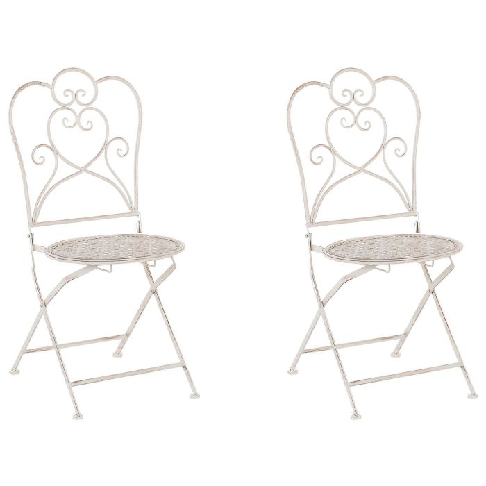 Enjoy your favourite refreshing beverage sitting at this decorative iron bistro chairs in a classic shade of beige. Provencal style-inspired design and filigree ornaments add elegance to any balcony decor. Thanks to its neutral tone, this bistro set looks great paired with a set of cosy pillows and blankets in every colour scheme. Details: Color: Beige. Main material: Iron. Weight: 10 Assembly: Does Not Require Assembly Weight Capacity: 120 Seat Height: 45