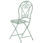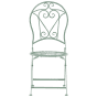 Utterly romantic atmosphere in your outdoor area. This green foldable set of chairs is an ideal choice for every small balcony or terrace, providing a pretty, tiny seating spot for two. Powder-coated with a distressed effect, the set will fit beautifully into the vintage-inspired area filled with potted plants and flowers, where you can spend your morning with a cup of coffee. Details: Color: Green. Main material: Iron. Weight: 5 Assembly: Does Not Require Assembly Weight Capacity: 120 Seat Height: 44
