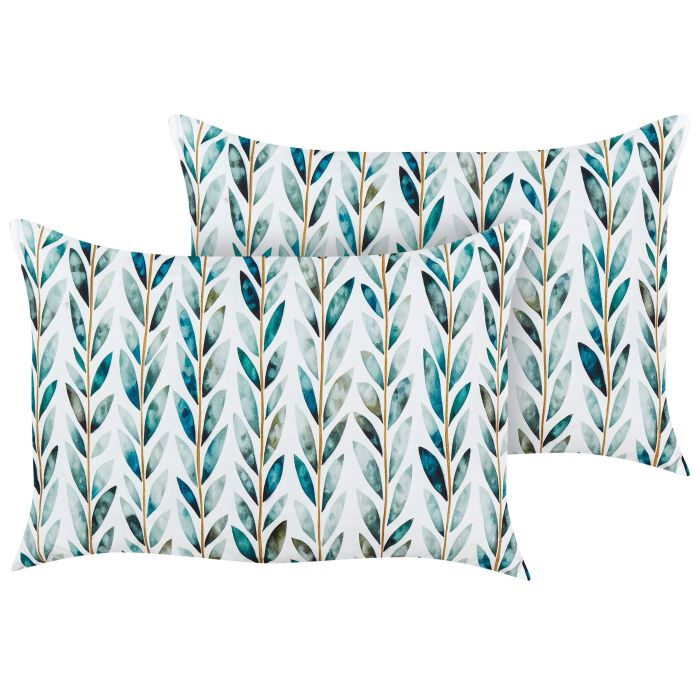 Set of 2 Outdoor Cushions Leaf Motif 40 x 60 cm White and Green LOANO