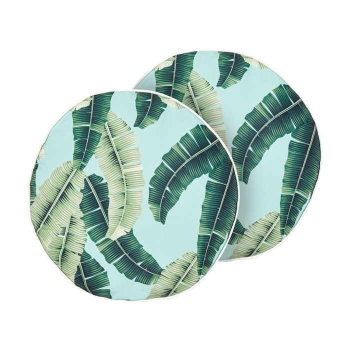 Set of 2 Outdoor Cushions Leaf Motif ⌀ 40 cm Green BOISSANO