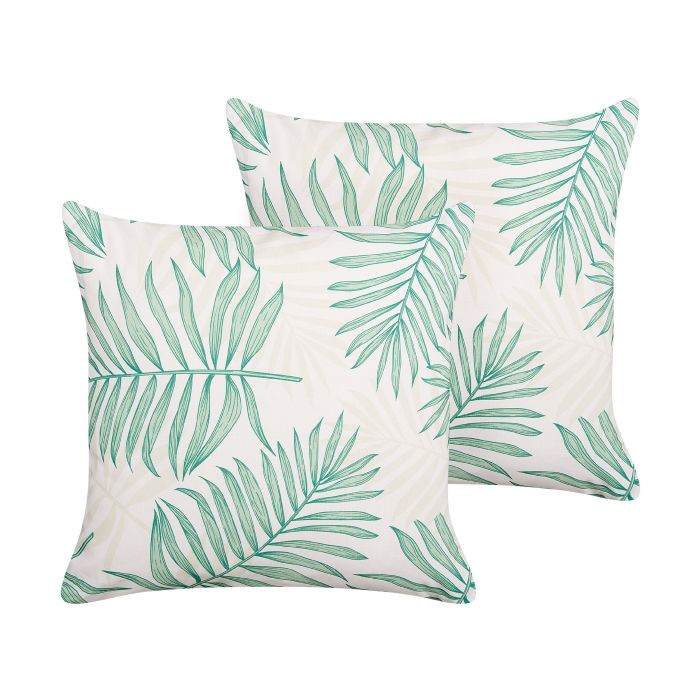 Set of 2 Outdoor Cushions Leaf Pattern 45 x 45 cm Beige and Green POGGIO