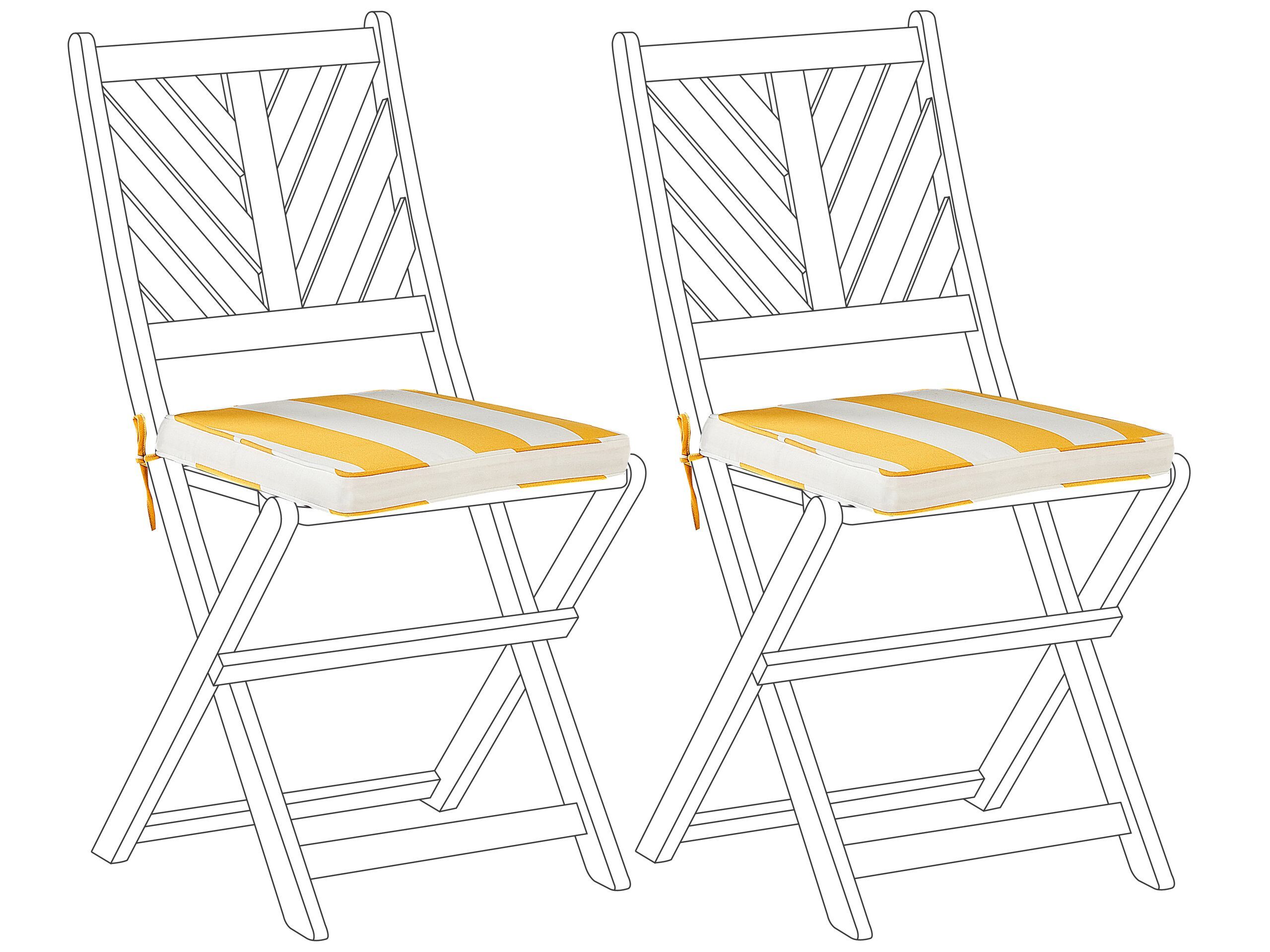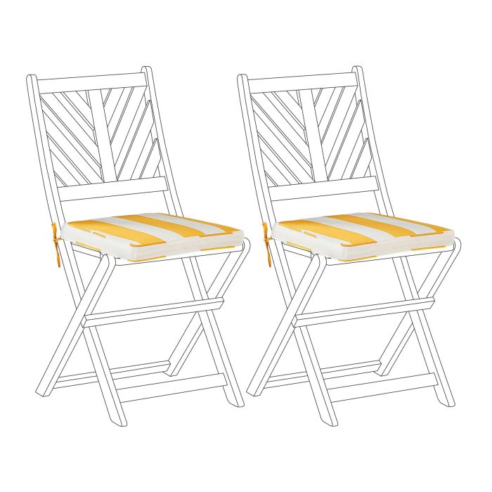 Set of 2 Outdoor Seat Pad Cushions Yellow and White TERNI