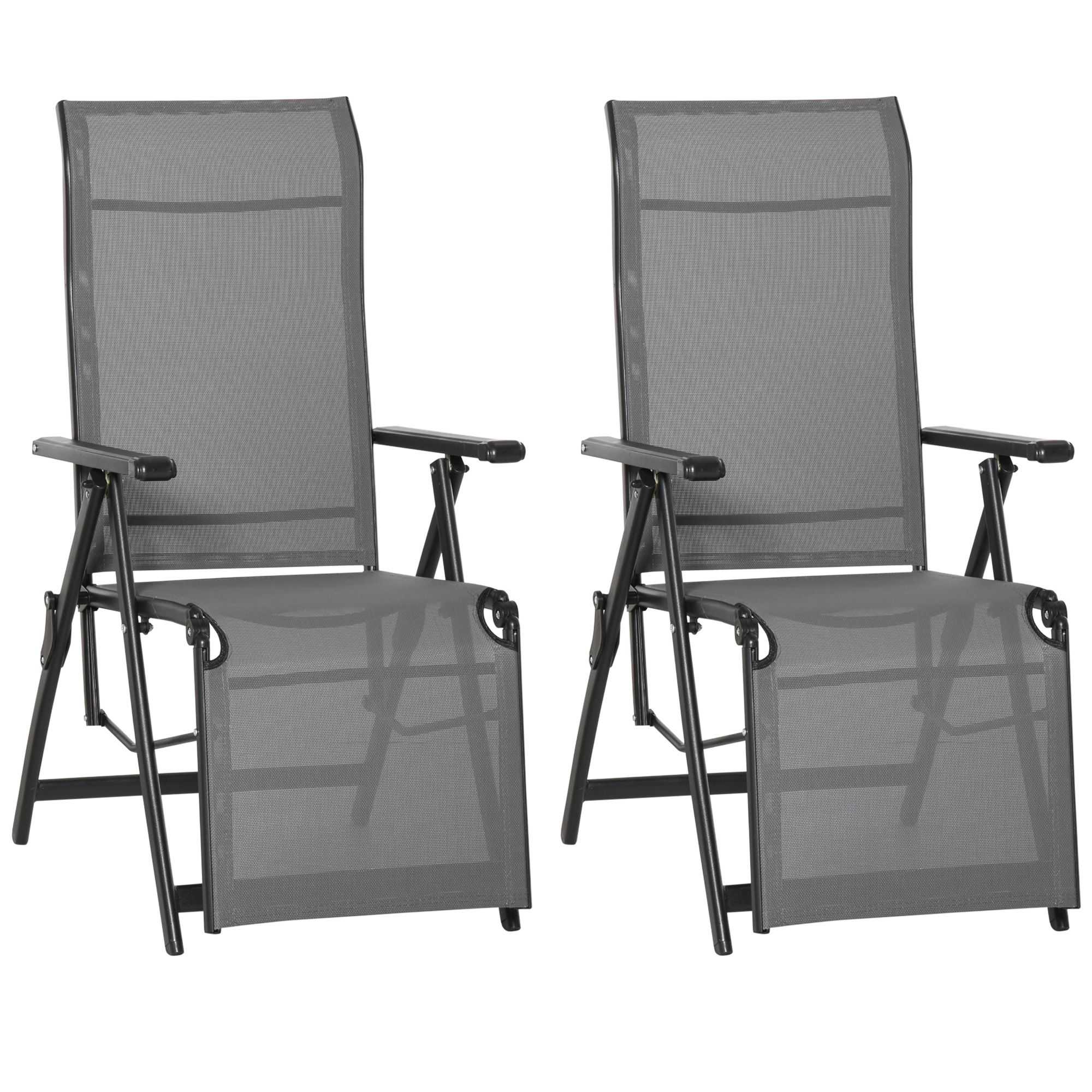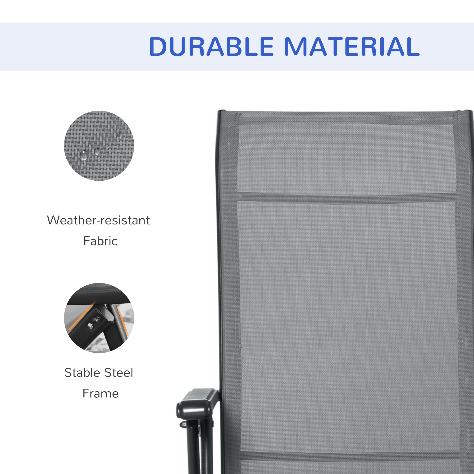 Set of 2 Outdoor Sun Lounger Adjustable Folding Steel Chaise Reclining Lounge Chairs with 10 Back and Leg Positions, Grey