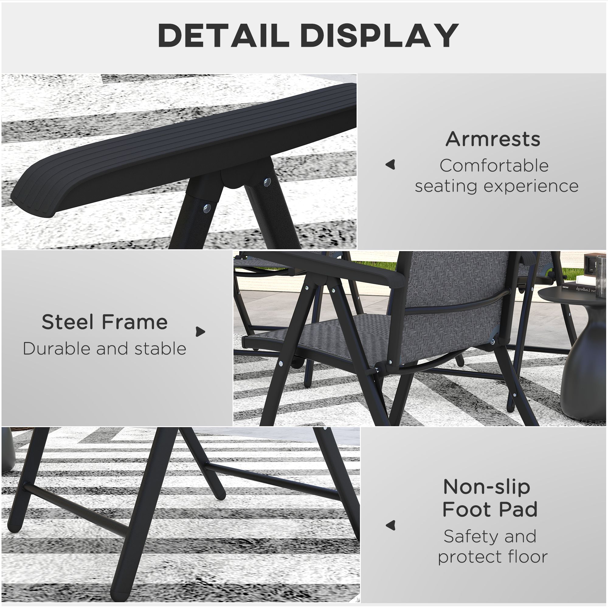 Set of 2 Outdoor Wicker Folding Chairs, Patio PE Rattan Dining Armrests Chair set with 7 Levels Adjustable Backrest, for Camping