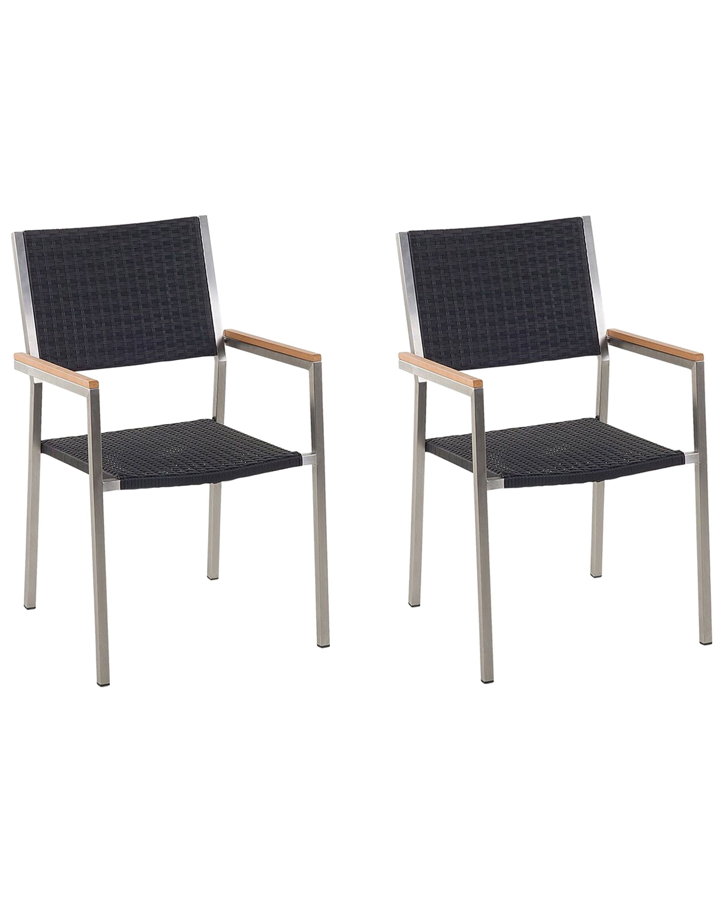 Set of 2 PE Rattan Garden Chairs Black GROSSETO