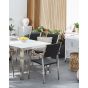 This outdoor chair set is the perfect choice for a dining spot in your garden. The frame is made from stainless steel to ensure stability, while wooden armrests protect your body from cold metal. The seat and backrest are crafted from black synthetic rattan providing maximum comfort. Lean back and enjoy the sun in this chair. Details: Color: Black, Silver. Main material: PE Rattan. Additional material: Plastic Wood, Stainless Steel. Weight: 7 Assembly: Does Not Require Assembly Weight Capacity: 160 Seat Height: 44