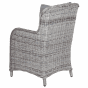 A set of two outdoor dining chairs that seamlessly blend in with any contemporary, traditional or modern garden. They feature a robust, aluminium frame which is covered with exceptionally durable faux rattan in a light grey tone. The utmost sitting comfort is guaranteed thanks to the generously padded seat and back cushions which perfectly complement the beautiful wicker weaving. Details: Color: Grey. Main material: PE Rattan. Additional material: Polyester. Material Composition: 100% Polyester Weight: 10 Assembly: Does Not Require Assembly Weight Capacity: 100 Padding Thickness: 10 Seat Height: 38