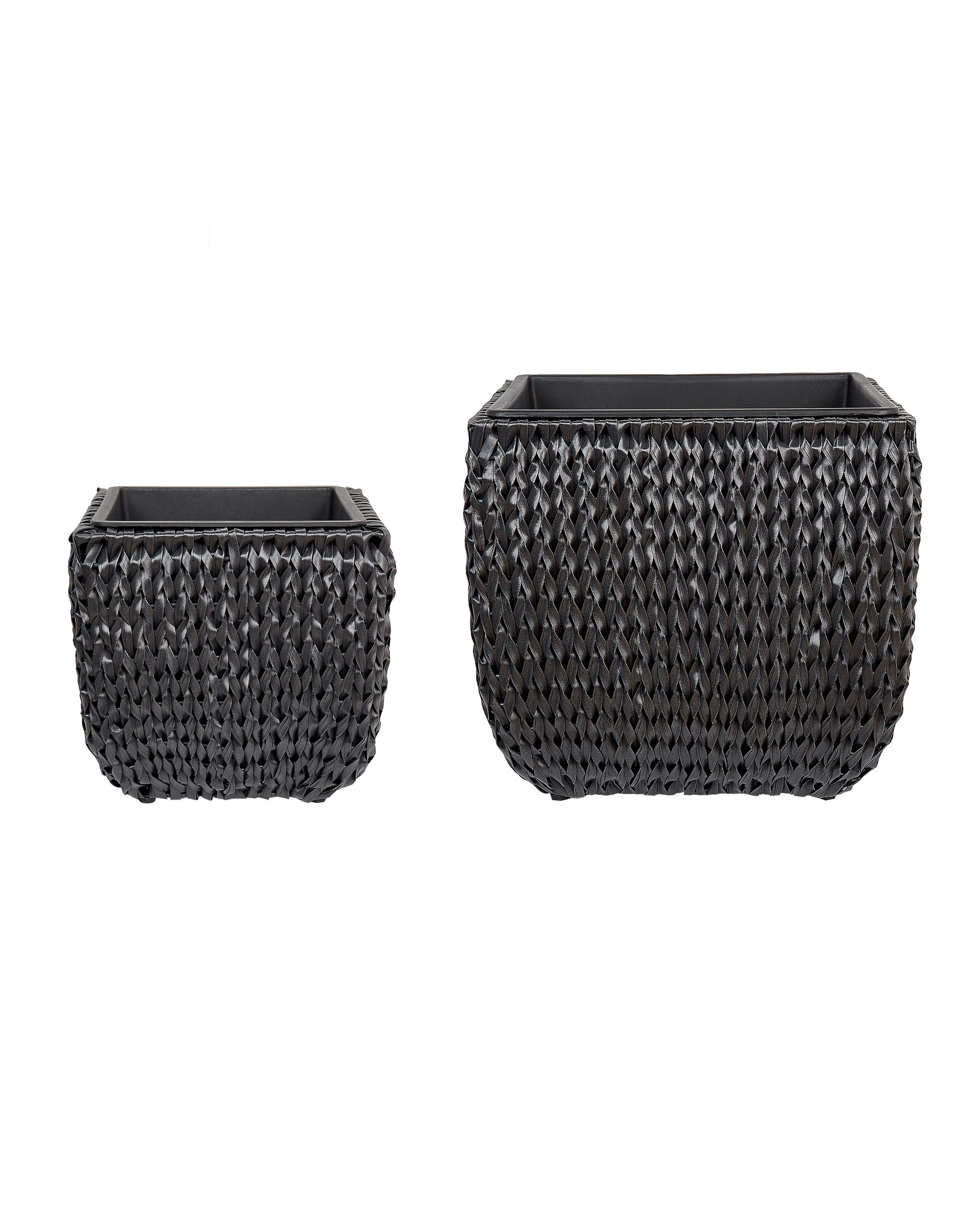 Set of 2 PE Rattan Plant Pots Black BERBERIS