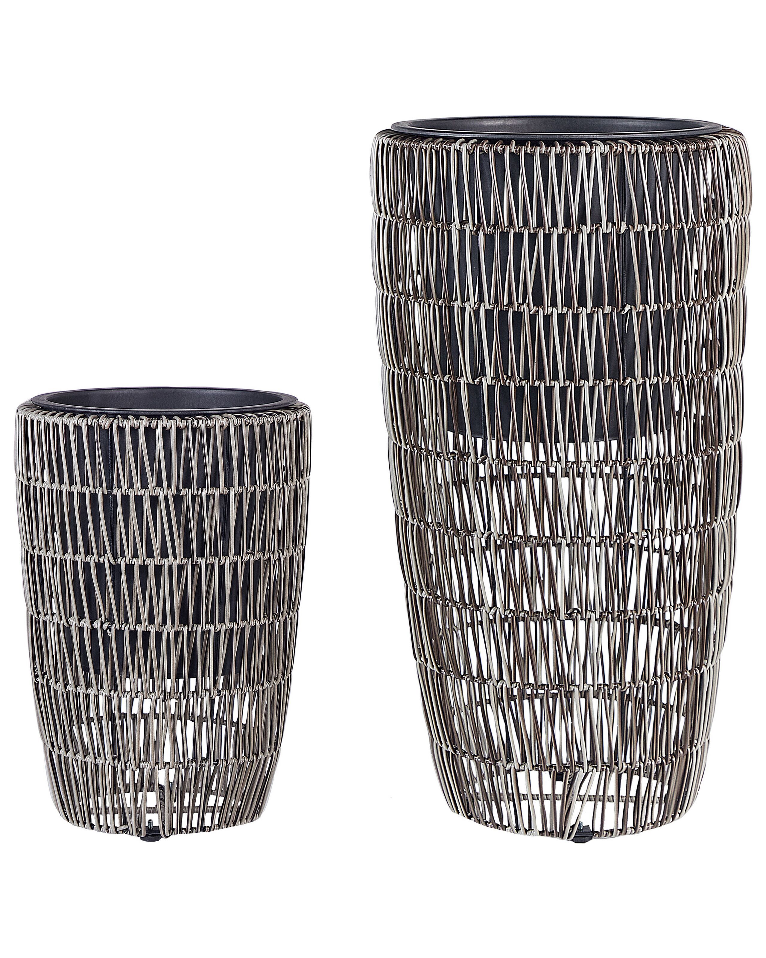 Set of 2 PE Rattan Plant Pots Brown CHELONE