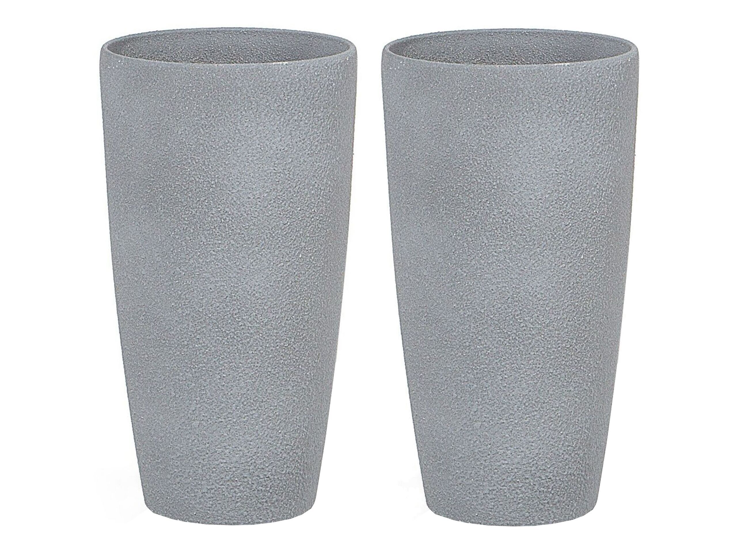Set of 2 Plant Pots Stone 23 x 23 x 43 cm Grey ABDERA