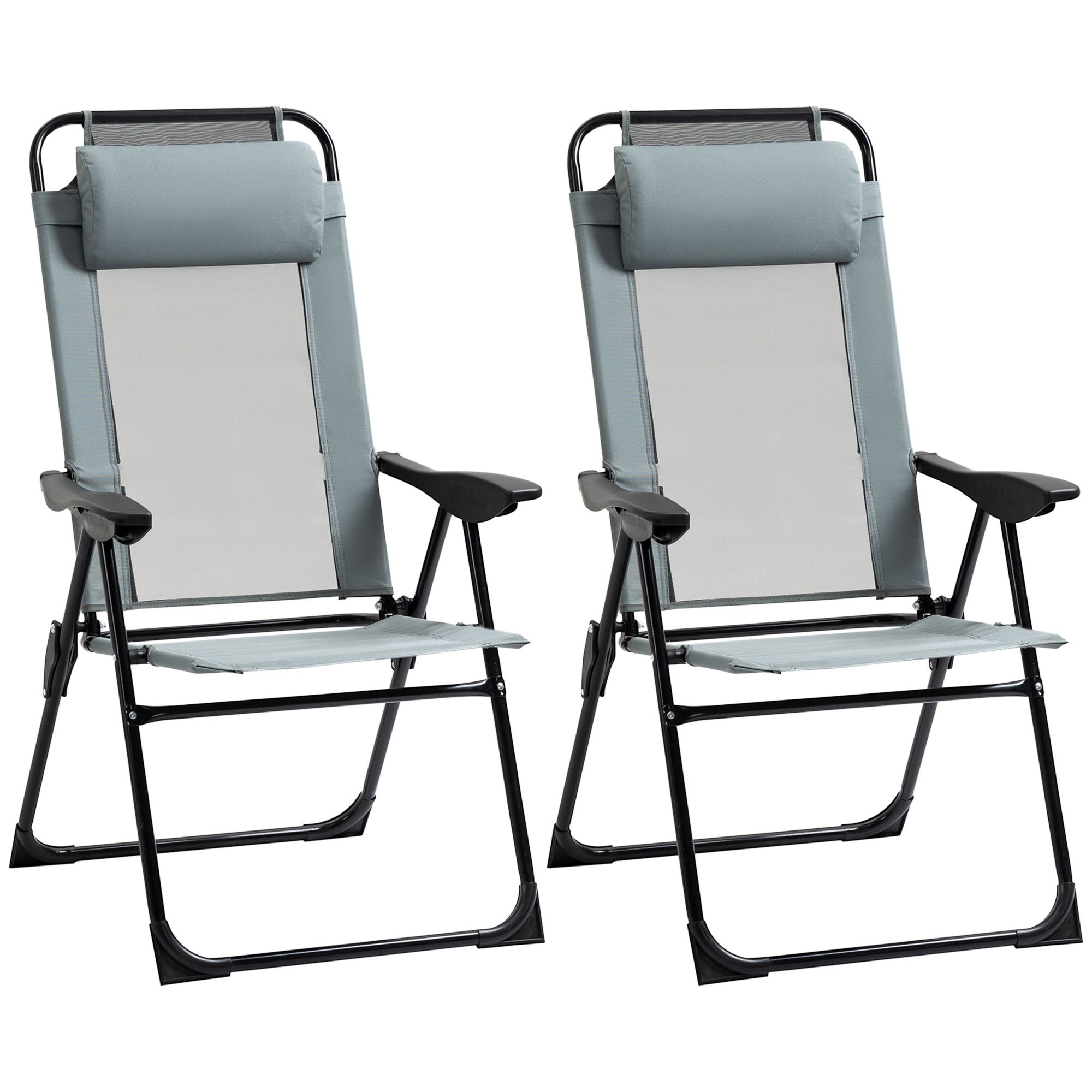 Set of 2 Portable Folding Recliner Chair Outdoor Patio Chaise Lounge Chair with Adjustable Backrest, Grey