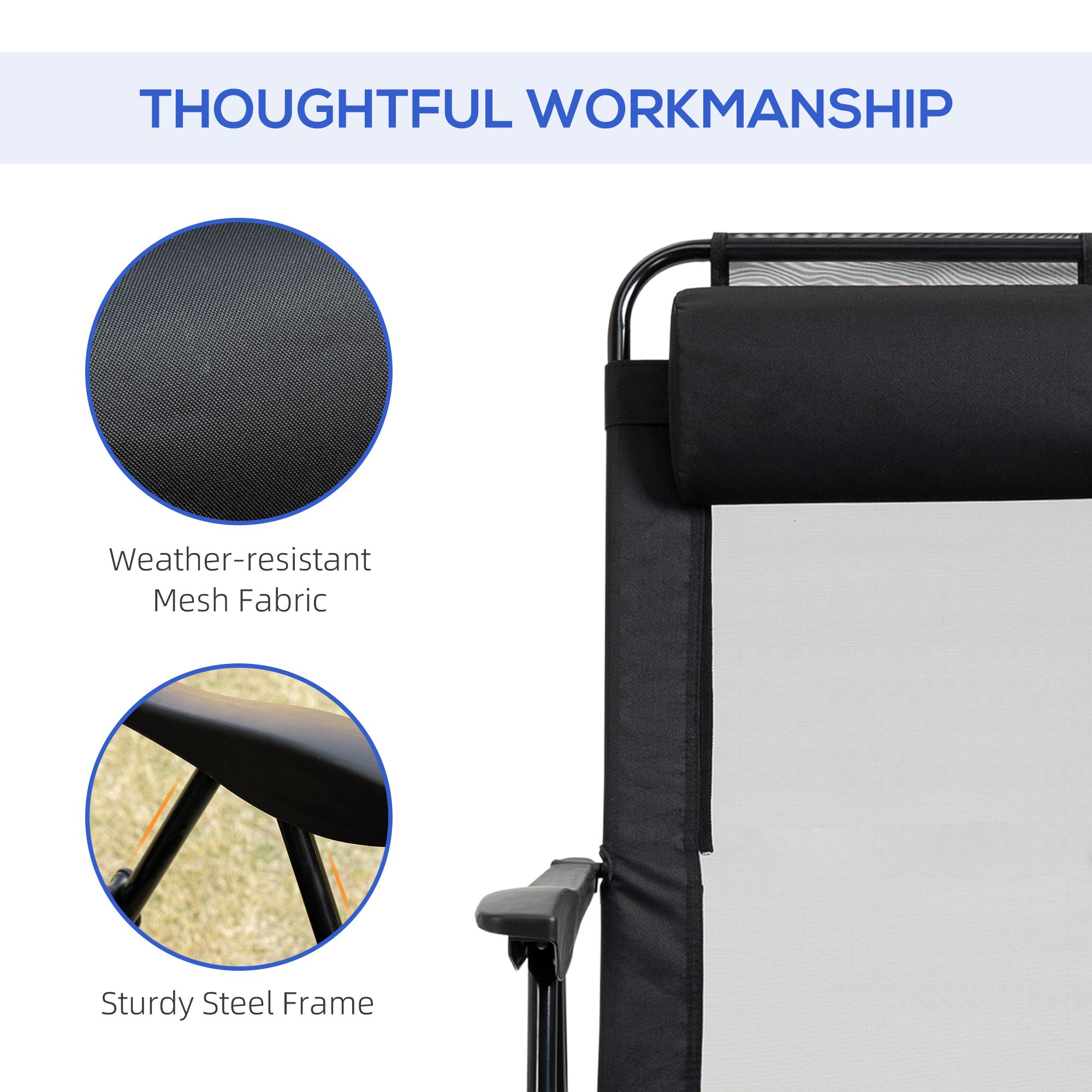 Let the stress melt away whenever with these two sun chairs from! The duo set is great for enjoying the outdoors with a friend. The backs recline to five different positions, so you can relax the way you want. The fabric mesh weather-resistant seats are breathable, with a padded headrest for comfort and support. A foldable design, you can take these garden chairs wherever you want - whether that's around your outdoors or beyond.
