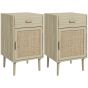 Bedside Table - LAMONT 2 Piece Nightstand Natural Wood Effect 40cm