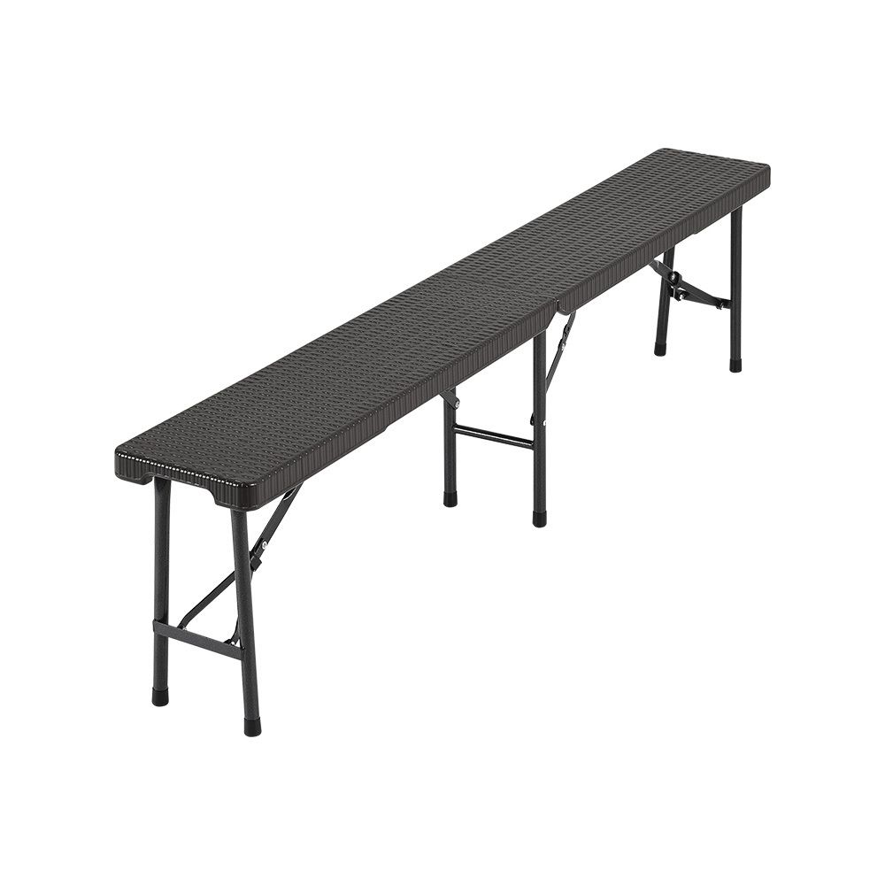 This foldable bench set boasts a stylish rattan design, and will be perfect for picnics, parties, and camping trips. With a length of 180cm, it can comfortably accommodate 3-4 people. It is easy to care for with its plastic and metal construction and it is not afraid of rain or sun. The benches can be easily folded down when not in use and are easy to carry thanks to the built-in handle on the side.