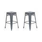 Comfortable, practical and on-trend - this set of 2 grey bar stools is a perfect addition to a dining room in industrial and modern decor. The loft-inspired design is combined with functionality, such as stackable feature that makes them easy to pair with any kind of kitchen set-up, and can also be used in the bathroom, office or garage. Stools are made of powder-coated steel with leg pads to protect your floor and provide a non-slip stand. The cross beams on all four sides can also serve as comfortable footrests. Details: Color: Grey. Main material: Steel. Weight: 5 Assembly: Does Not Require Assembly Weight Capacity: 130 Seat Height: 60