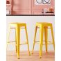 Comfortable, practical and on-trend - this set of 2 yellow bar stools is a perfect addition to a dining room in industrial and modern decor. The loft-inspired design is combined with functionality, such as stackable feature that makes them easy to pair with any kind of kitchen set-up, and can also be used in the bathroom, office or garage. Stools are made of powder-coated steel with leg pads to protect your floor and provide a non-slip stand. The cross beams on all four sides can also serve as comfortable footrests. Details: Color: Yellow, Gold. Main material: Steel. Weight: 5 Assembly: Does Not Require Assembly Weight Capacity: 130 Seat Height: 76