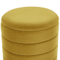 Turn your living room into a glamorous area with this set of storage pouffes. Their velvet upholstery is pleasant to touch, while the warm yellow colour matches a variety of accessories and draws attention to the stools. Both are equipped with storage compartments, which allow for decorative pillows and other things to be hidden away. The modern design is highlighted by horizontal tufting, while the whole construction is finished with a golden base, making both pieces stand out. Details: Color: Yellow, Gold. Main material: Velvet. Additional material: Nonwoven Fabric, Plywood, Stainless Steel. Material Composition: 100% Polyester Weight: 6 Assembly: Does Not Require Assembly Weight Capacity: 100 Legs Height: 6