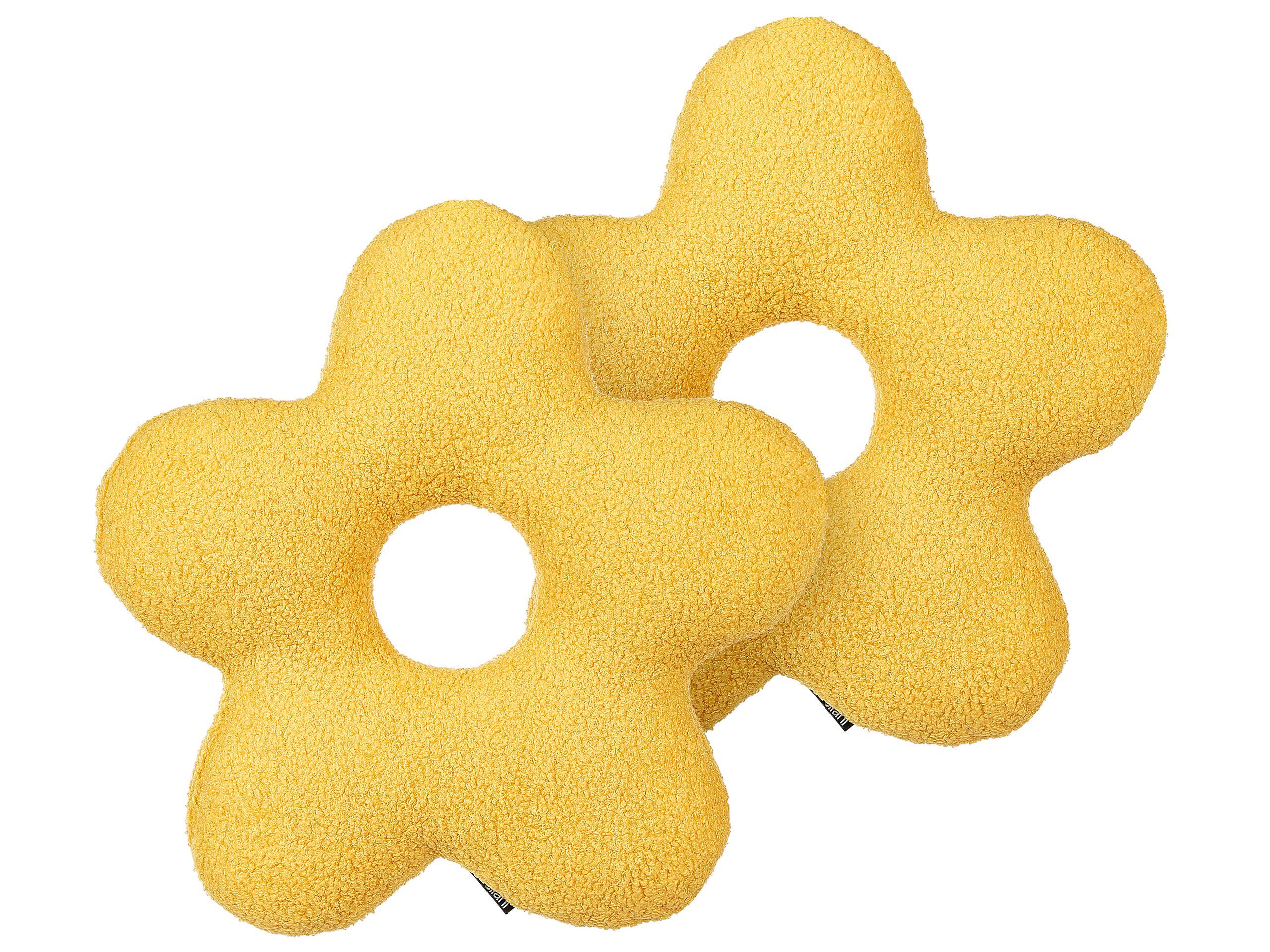 Refresh your home decor and add a touch of modern elegance with this flower-shaped set of 2 cushions. The covers are made from durable and pleasant-to-touch teddy fabric. Thanks to the versatile design, the cushions will match any living room or bedroom, perfectly complementing spaces in any style. Details: Color: Yellow. Main material: Faux Fur. Material Composition: 100% Polyester Assembly: Does Not Require Assembly