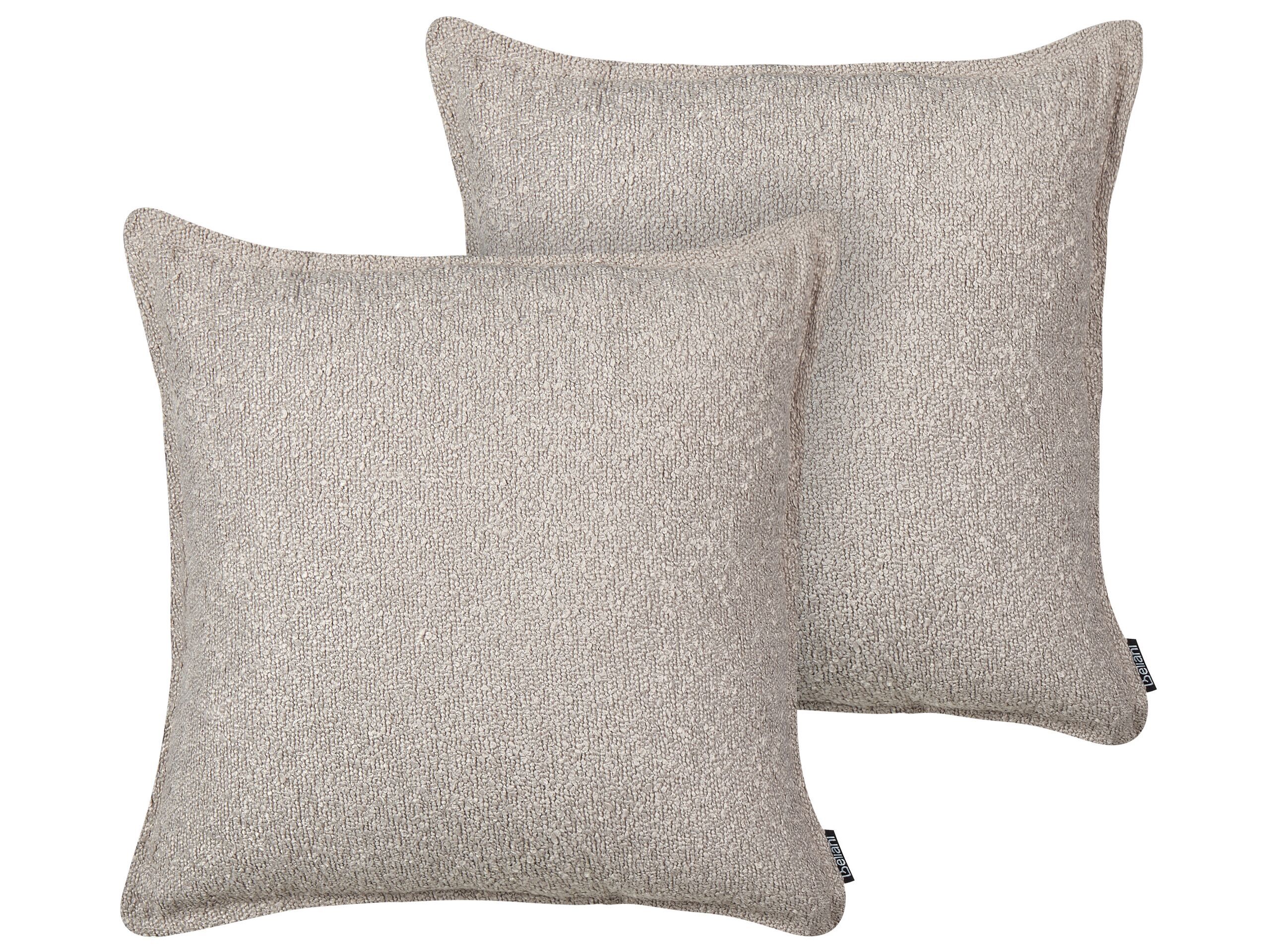Get ready to cosy up with our set of two cushions boasting plush teddy texture covers for ultimate comfort. Accompanied by a velvety reverse, they exude elegance. The easily removable cases effortlessly blend simple sophistication and inviting warmth, making these cushions a captivating focal point in any space. Details: Color: Beige. Main material: Polyester. Material Composition: 100% Polyester