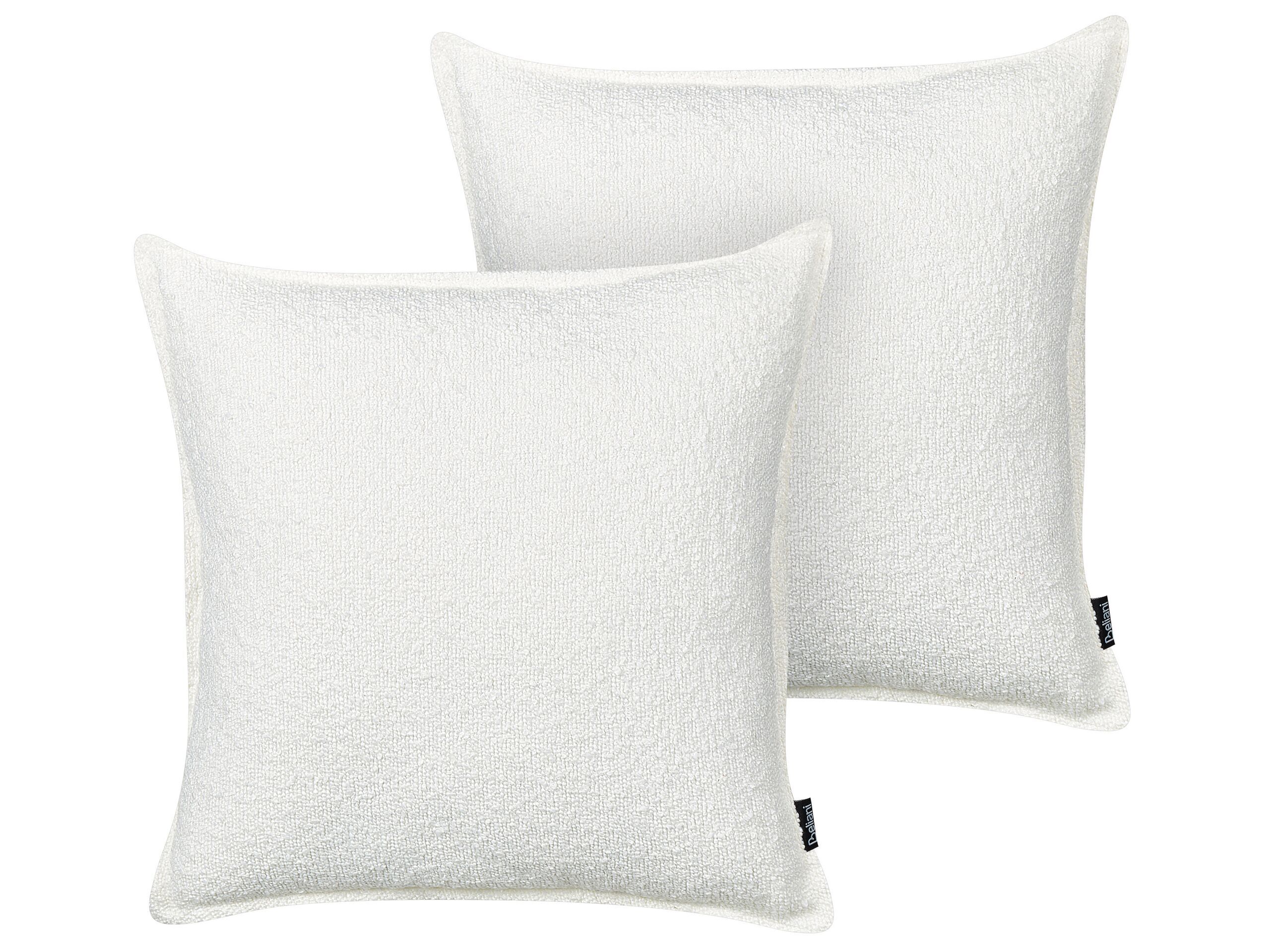 Get ready to cosy up with our set of two cushions boasting plush teddy texture covers for ultimate comfort. Accompanied by a velvety reverse, they exude elegance. The easily removable cases effortlessly blend simple sophistication and inviting warmth, making these cushions a captivating focal point in any space. Details: Color: White. Main material: Polyester. Material Composition: 100% Polyester