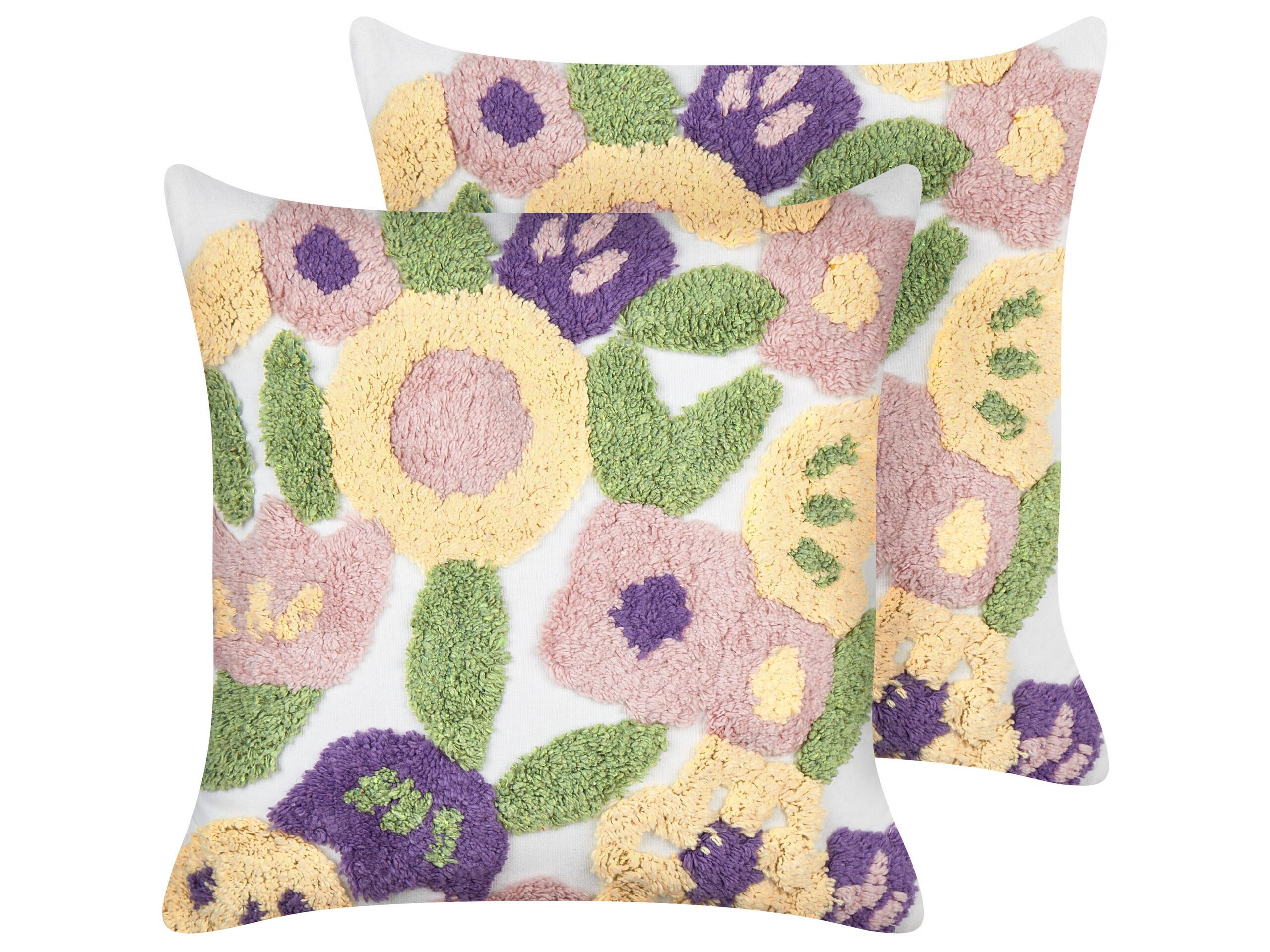 Set of 2 Tufted Cotton Cushions 45x45cm Multicolour