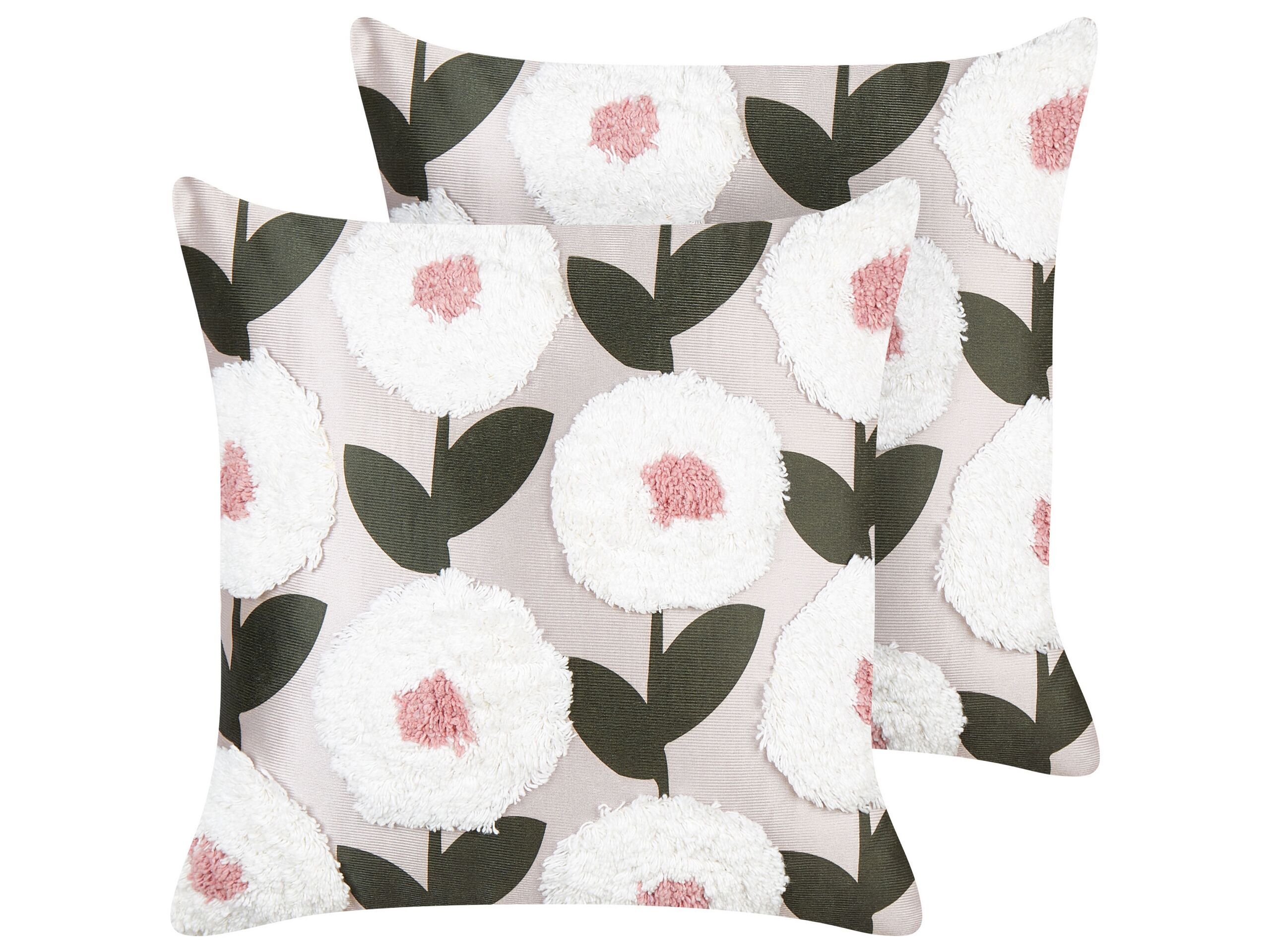 Set of 2 Tufted Cotton Cushions Floral Pattern 45x45cm Pink