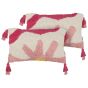 Set of 2 Tufted Cotton Cushions with Tassels 30x50cm Pink and White