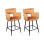 These bar chairs are all about modern design, they present a retro-inspired silhouette mixed with functionality, high-quality materials and comfort. A padded seat comes with armrests and a backrest with eye-catching cut-out detail. The smooth velvet upholstery gives depth and sheen to the colour, complementing slanted, powder-coated black legs. Vertical tufting on the inner back lends chairs an elegant touch. With that universal design, this seat would look fantastic by the kitchen counter in any interior. Details: Color: Orange, Black. Main material: Velvet. Additional material: Iron. Material Composition: 100% Polyester Weight: 7 Assembly: Legs to be Fitted Weight Capacity: 120 Padding Thickness: 5 Seat Height: 55