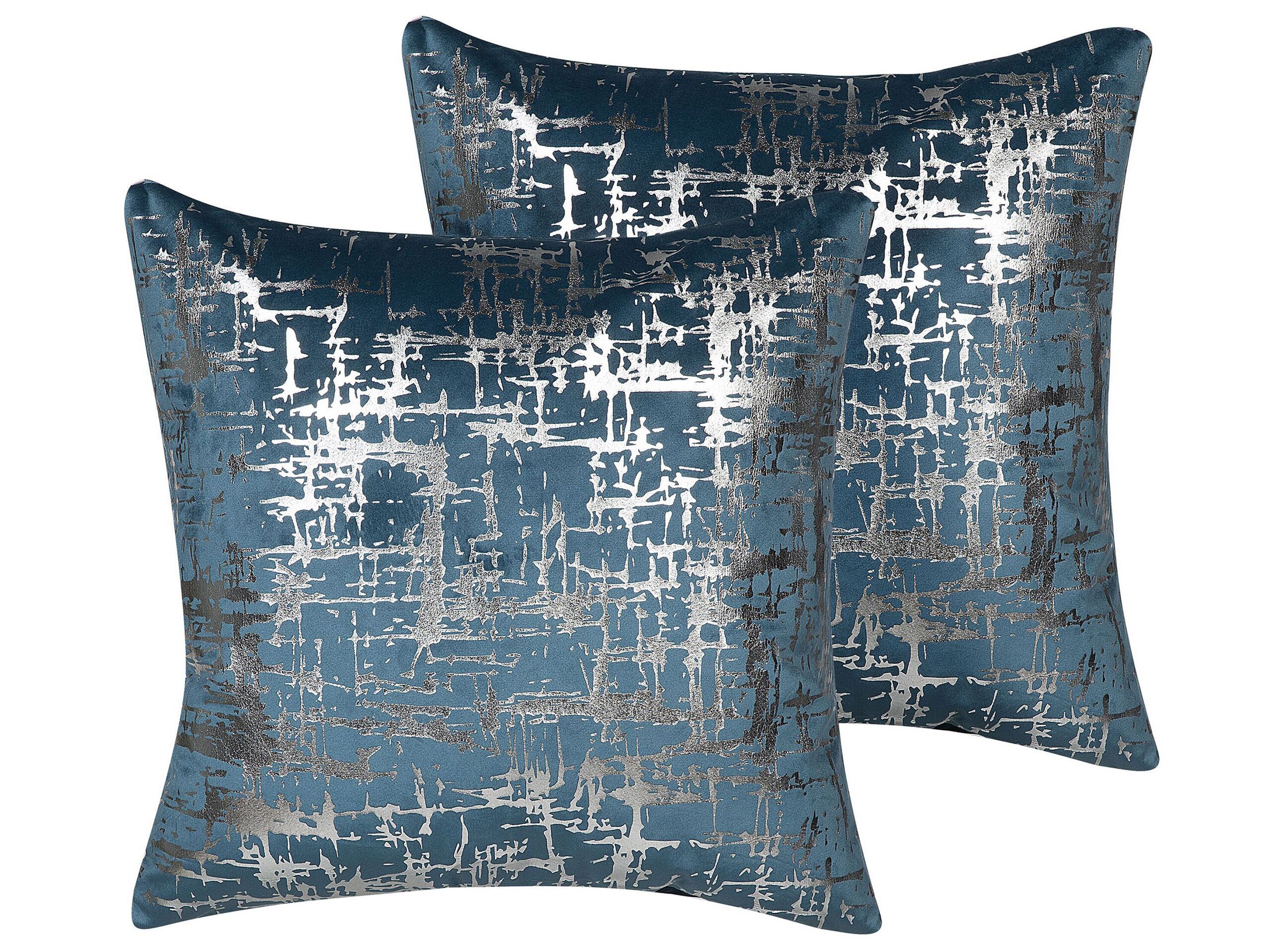 Set of 2 Velvet Cushions Crackle Pattern 45x45cm Blue