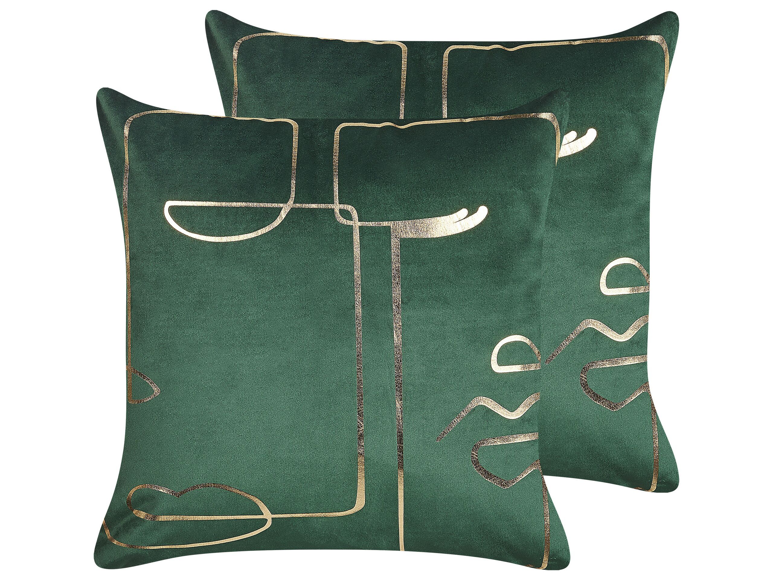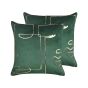 Set of 2 Velvet Cushions Face Motif 45x45cm Green